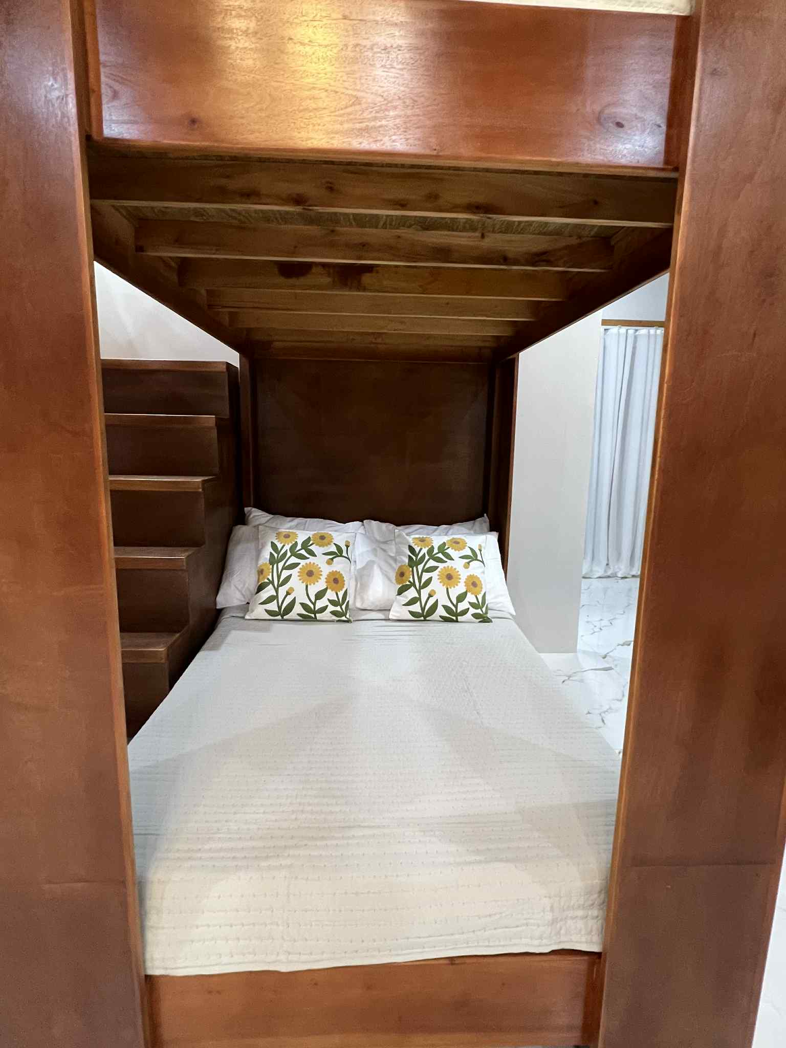 - 1 Queen bed + 1 double pull-out + 1 bunk bed